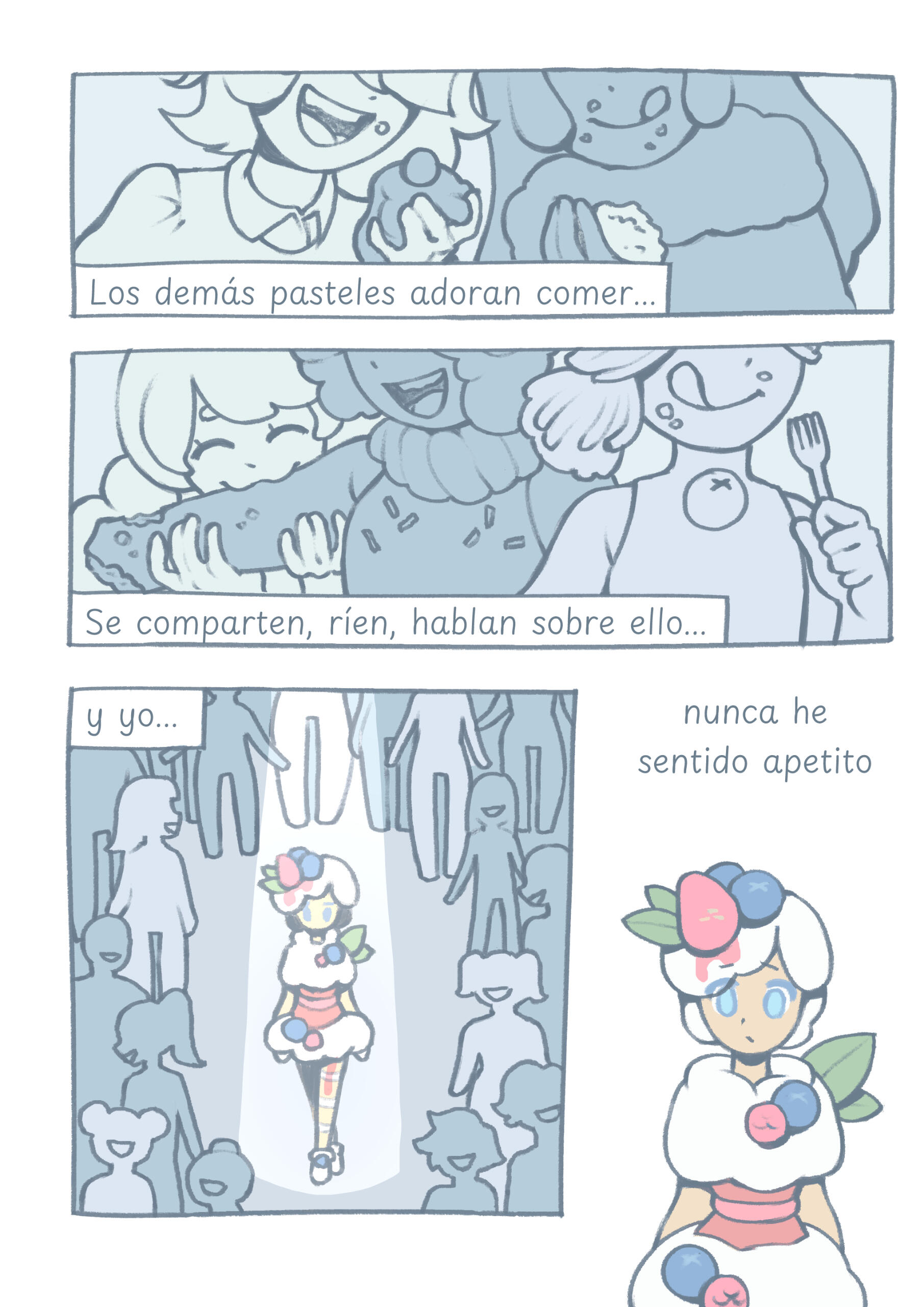 Escrito y dibujado por DisanvelEn una sociedad donde es común que los pasteles se coman entre sí, Berries nunca ha sentido la necesidad de hacerlo. ¿Será capaz de descubrir la razón detrás de su falta de apetito?